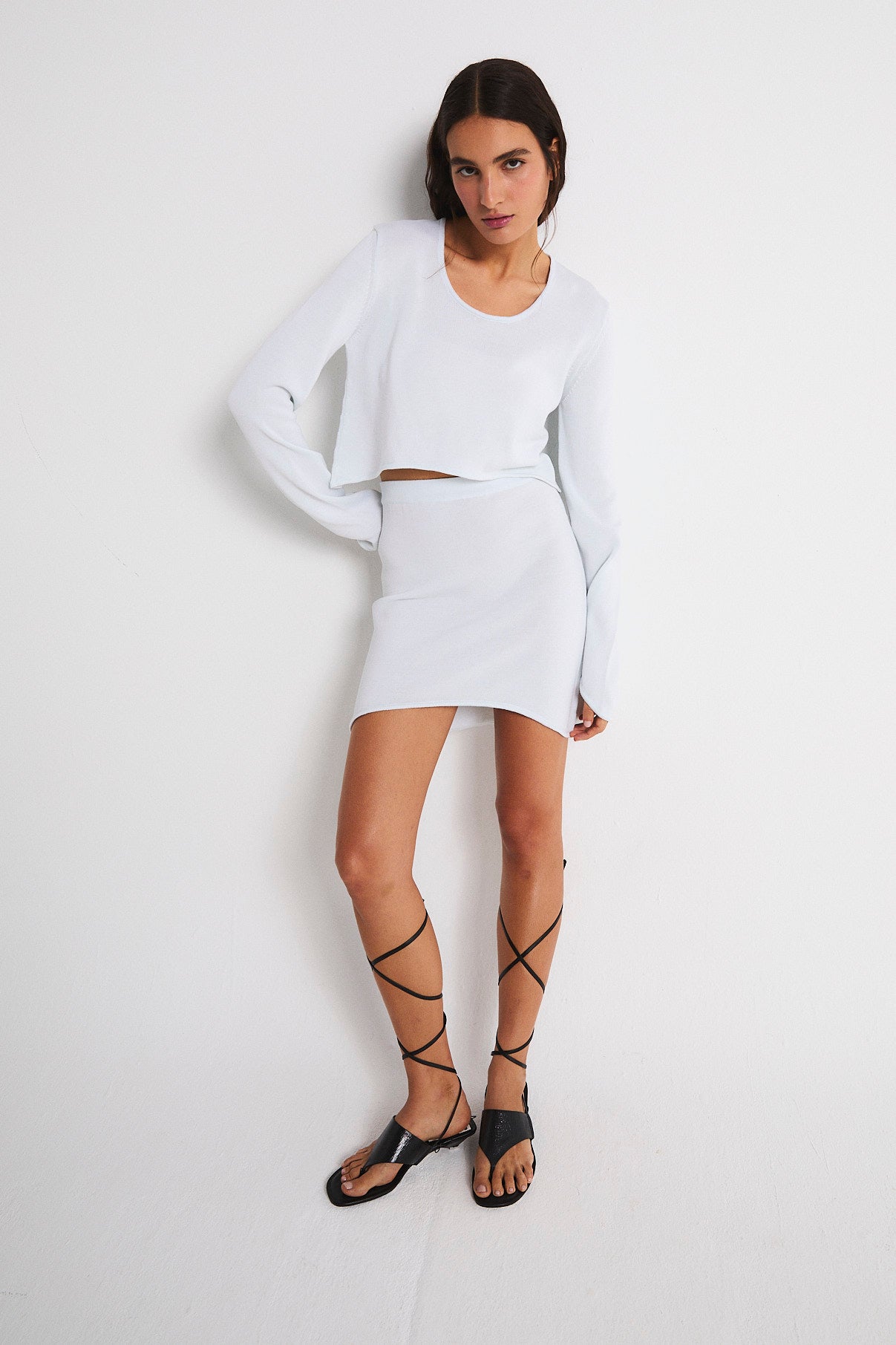 Long-sleeve wawy top. Matching mini wawy skirt.